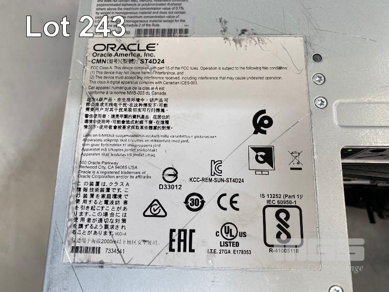 RACKMOUNT STORAGE ARRAY, ORACLE STORAGE DE2-24C (ST4D24), 4U, 16 x 8TB SAS HDD (12Gbps) (0F23746), 2 x SAS CONTROLLERS, 2 x PSU (NO CABLES) S/N:1733NMT003