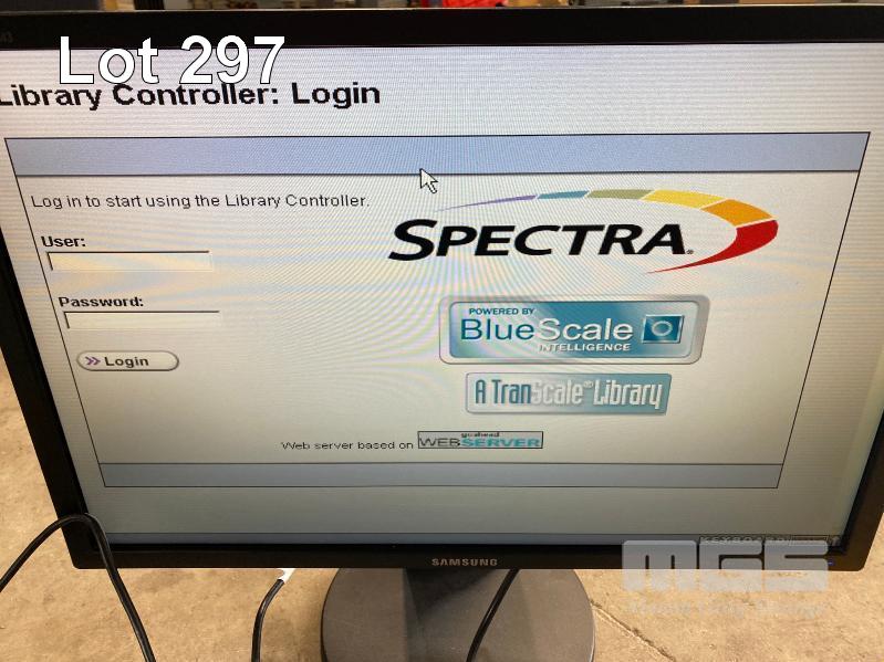 TAPE LIBRARY, SPECTRA LOGIC T380 WITH 4 x LTO-6 FC TAPE DRIVES, 90949382 WITH RAILS (NO CABLES) OVERALL SIZE 124 x 44 x 90cm (NOTE: MISSING CABINET COVERS, LCD DISPLAY FAULTY) S/N:1324815