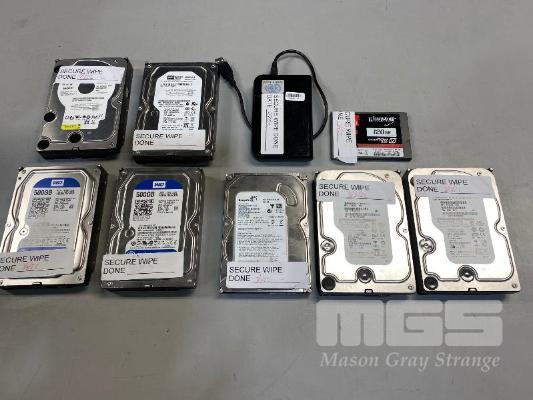 2 x 250GB SATA HARD DRIVES, 3.5" 5 x 500GB SATA HARD DRIVES, 3.5" 1 x 120GB SSD & 1 x 320GB EXTERNAL USB DRIVE
