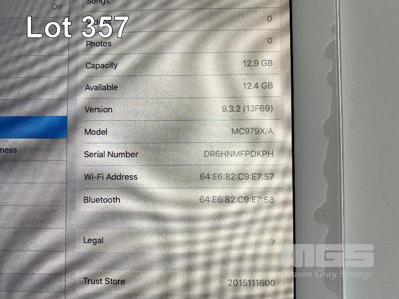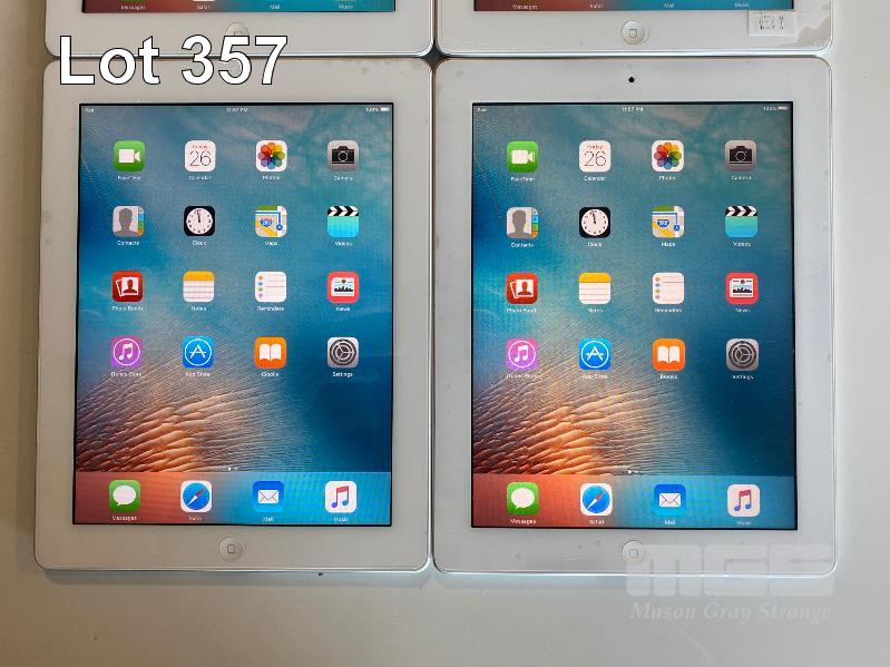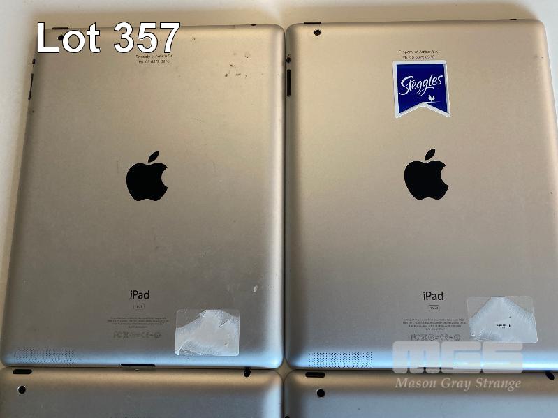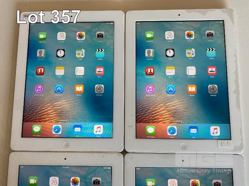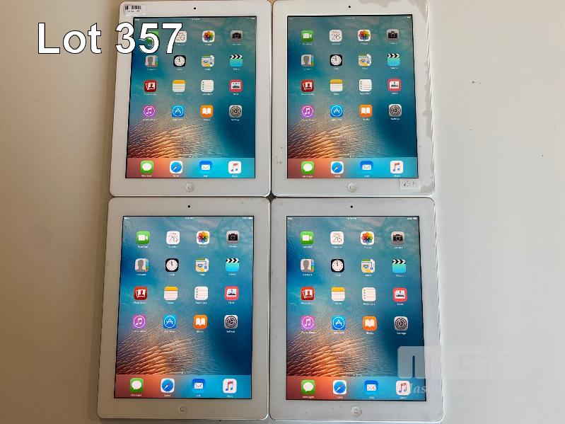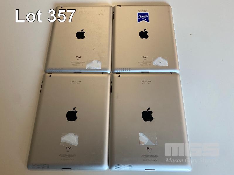 4 x APPLE iPAD 2, MODEL A1395, 16GB (NO CABLES, NO CHARGERS) (NOTE: ALL ENGRAVED ON BACK)