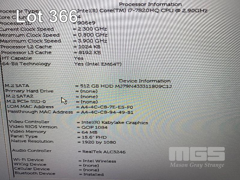 LAPTOP, DELL PRECISION 3520 WORKSTATION, CORE i7 7820HQ (7TH GEN) @ 2.9GHz, 16GB DDR4 RAM, 512GB M.2 SSD, 15.6" WIDESCREEN (1920x1080), INTEL KABYLAKE GRAPHICS, 2GB NVIDIA QUADRO M620 VIDEO, Wi-Fi, BLUETOOTH, WINDOWS 10 PRO INSTALLED & POWER SUPPLY S/N:C622QH2