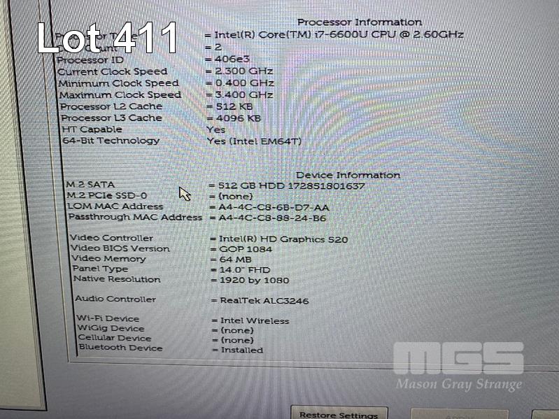 LAPTOP, DELL LATITUDE 7480, CORE i7 6600U (6TH GEN) @ 2.6GHz, 16GB DDR4 RAM, 512GB M.2 SSD, 14" WIDESCREEN (1920x1080), INTEL HD GRAPHICS 520, Wi-Fi, BLUETOOTH, WINDOWS 10 HOME INSTALLED & POWER SUPPLY S/N:4Z6CPH2
