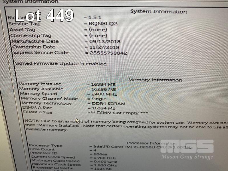 LAPTOP, DELL LATITUDE 7490, CORE i5 8250U (8TH GEN) @ 1.6GHz, 16GB DDR4 RAM, 256GB M.2 SSD, 14" WIDESCREEN (1920x1080), INTEL KABYLAKE GRAPHICS, CELLULAR, Wi-Fi, BLUETOOTH, WINDOWS 11 PRO INSTALLED & POWER SUPPLY (NOTE: NO BATTERY, MARKS ON SCREEN) S/N:BQN8LQ2