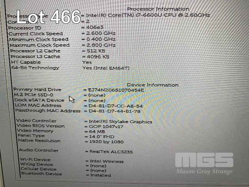 LAPTOP, DELL LATITUDE E7470, CORE i7 6600U (6TH GEN) @ 2.6GHz, 16GB DDR4 RAM, 512GB M.2 SSD, 14" WIDESCREEN (1920x1080), INTEL SKYLAKE GRAPHICS, Wi-Fi, BLUETOOTH, WINDOWS 10 HOME INSTALLED, DOCKING STATION & POWER SUPPLY S/N:9PLG4H2