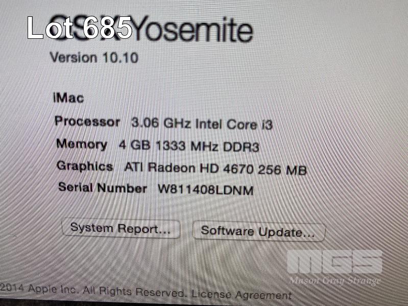APPLE iMAC (A1311), CORE i3 540 @ 3.06GHz, 4GB DDR3 RAM, 500GB SATA HDD, DVD-RW, BUILT-IN 21.5" DISPLAY (1920x1080), Wi-Fi, MAC OS 10.10 INSTALLED (NO KEYBOARD, NO MOUSE, NO CABLE) S/N:W811408LDNM
