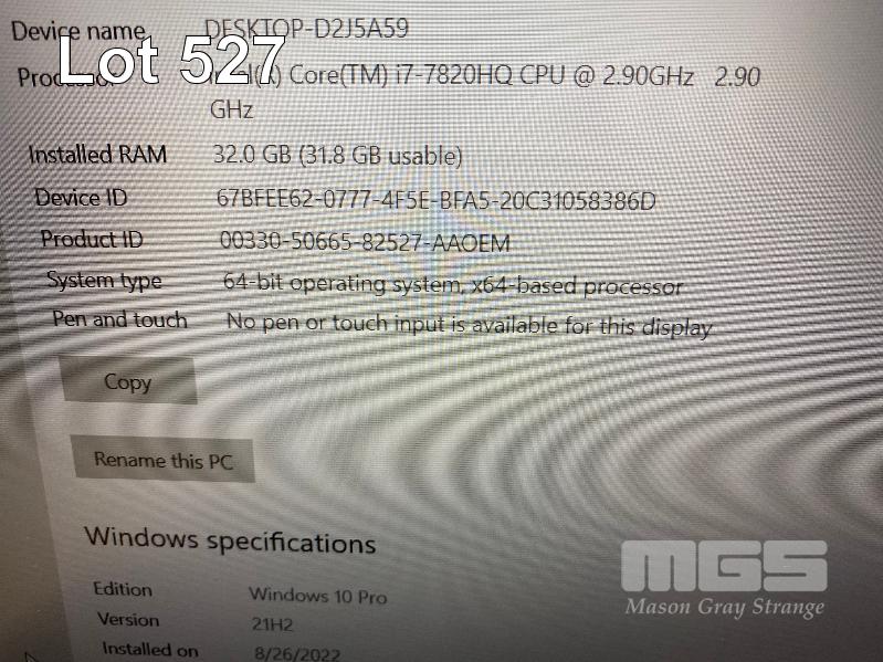 LAPTOP, LENOVO THINKPAD P51 MOBILE WORKSTATION, TYPE 20HJ, CORE i7 7820HQ (7TH GEN) @ 2.9GHz, 32GB DDR4 RAM, 512GB NVMe M.2 SSD, 15.6" WIDESCREEN (1920x1080), 4GB NVIDIA QUADRO M2200 VIDEO, Wi-Fi, BLUETOOTH, WINDOWS 10 PRO INSTALLED & POWER SUPPLY (NOTE: SMALL CRACK LINE ON CASING, MARKS ONS SCREEN) S/N:PF0XH2HS