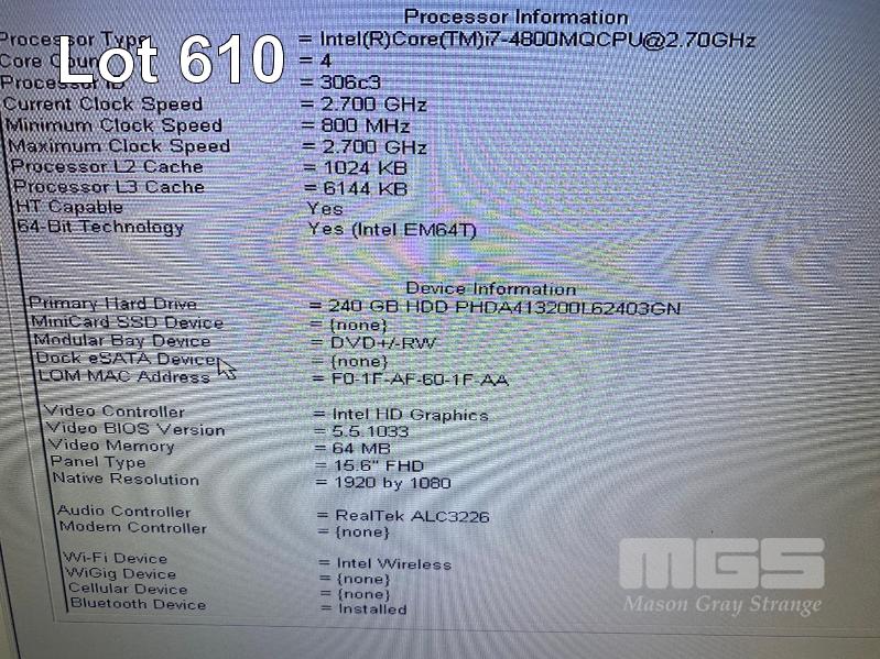 LAPTOP, DELL LATITUDE E6540, CORE i7 4800MQ (4TH GEN) @ 2.7GHz, 16GB DDR3 RAM, 240GB SSD, DVD-RW, 15.6" WIDESCREEN (1920x1080), INTEL HD VIDEO, Wi-Fi, BLUETOOTH, WINDOWS 10 PRO INSTALLED, DOCKING STATION & POWER SUPPLY (NOTE: SCREEN EDGING LOOSE) S/N:57HXNX1