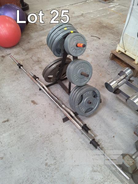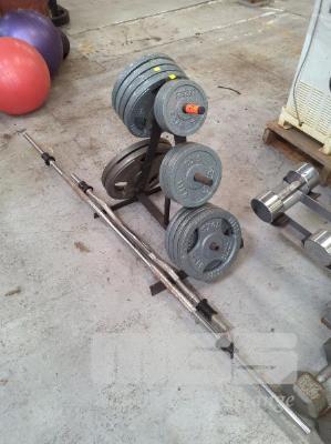 BARBELL & 18 WEIGHT PLATES, 2.5kg TO 20kg