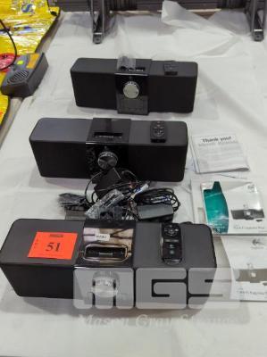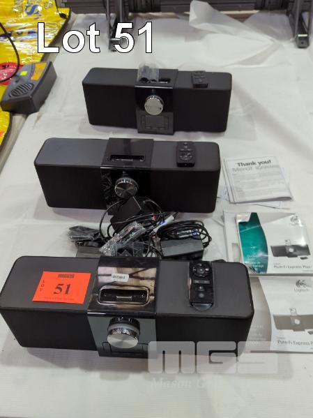 3 X LOGITECH EXPRESS PLUS iPOD/iPHONE SPEAKERS WITH REMOTES IN BLACK.