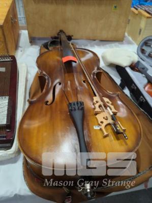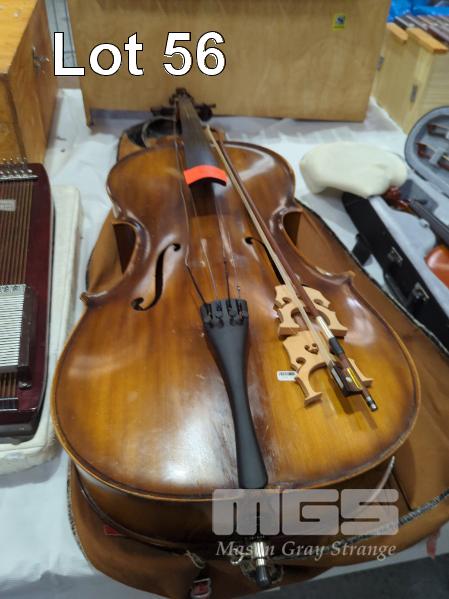 CELLO - GOLDEN STRAD "IMPORTED BY BOOSEY & HAWKES LONDON MADE IN HUNGARY" WITH BOW, CARRY BAG AND 2 X BRIDGES.