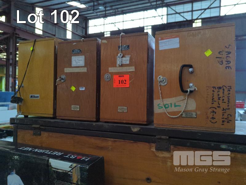 4 X VINTAGE WOODEN FIELD MICROSCOPE CASES ** EMPTY **