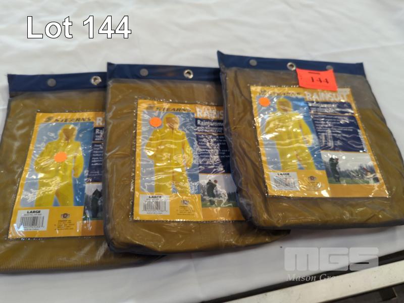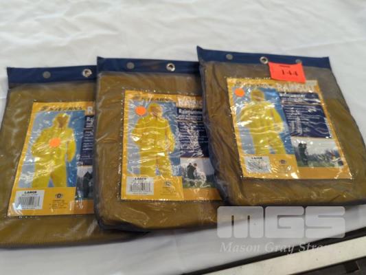 3 X "STEARNS" PVC RAINSUITS. SIZE LARGE. COLOUR YELLOW.