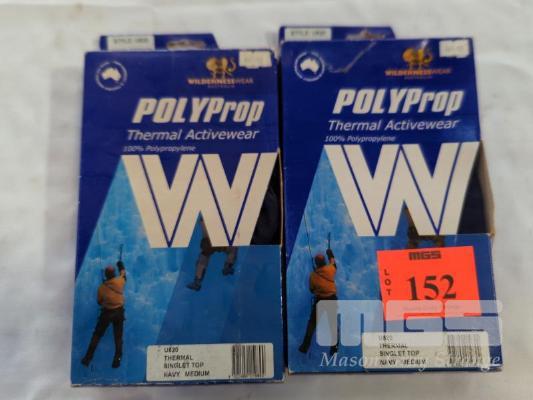 2 X SINGLET TOPS. WILDERNESS WEAR POLYPROPYLENE THERMAL UNDERWEAR - SIZE MEDIUM, COLOUR NAVY.