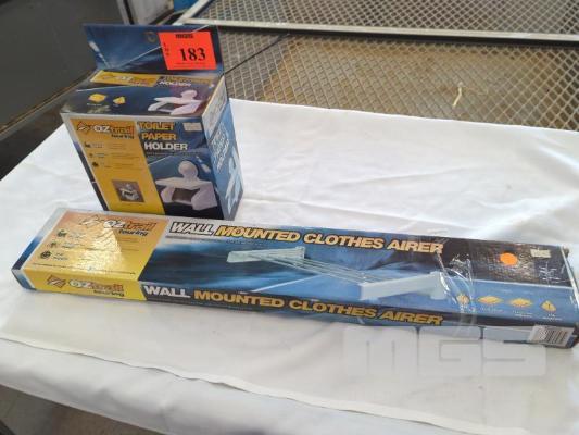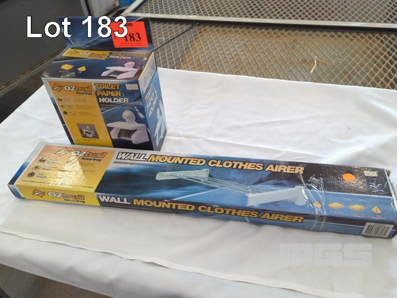 OZTRAIL "TOURING" WALL MOUNTED CLOTHES AIRER AND TOILET PAPER HOLDER.
