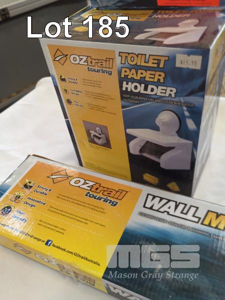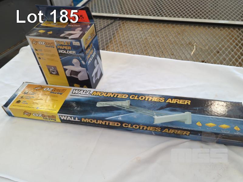 OZTRAIL "TOURING" WALL MOUNTED CLOTHES AIRER AND TOILET PAPER HOLDER.