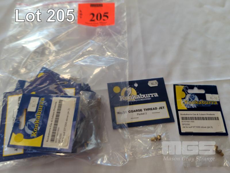 21 PACKS OF KOOKABURRA GAS LAMP JETS. 3 SUIT LA2015 & LA2025 LAMPS, 2 PER PACK. 7 @ #14 COURSE THREAD JET, 2 PER PACK. 11 @ #20 COURSE THREAD JET, 2 PER PACK.