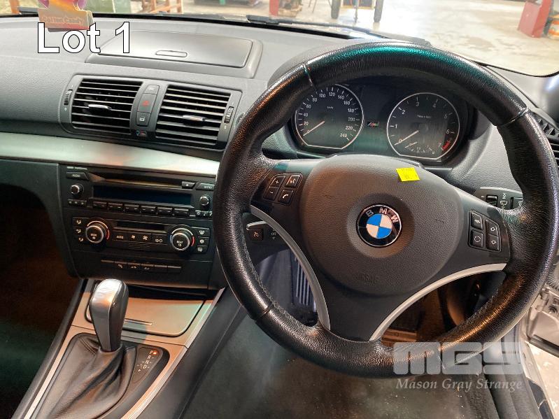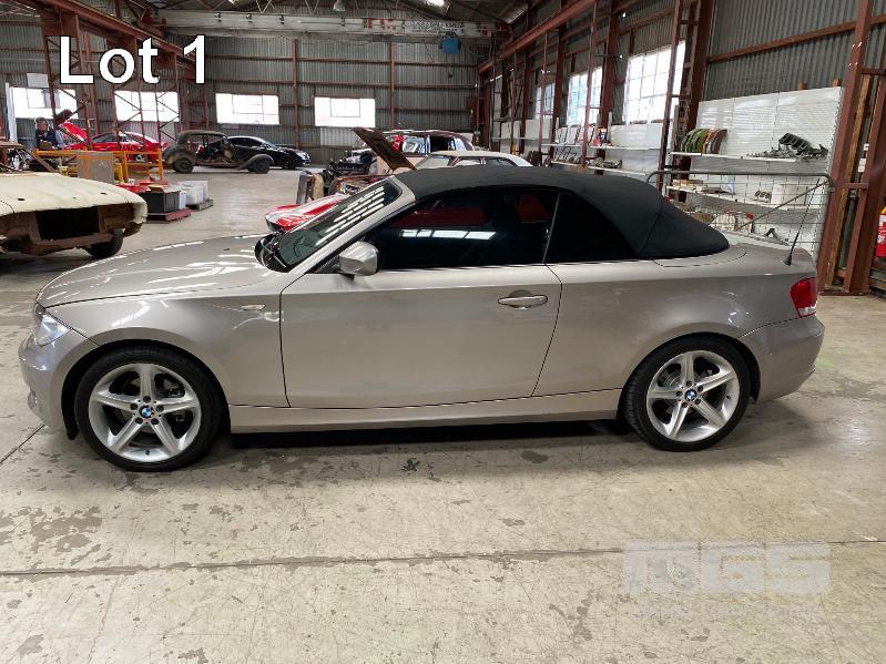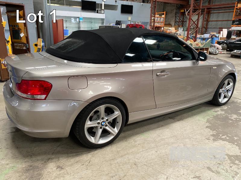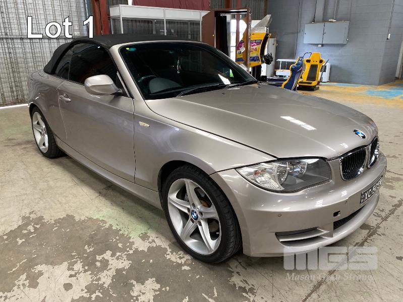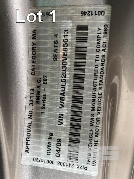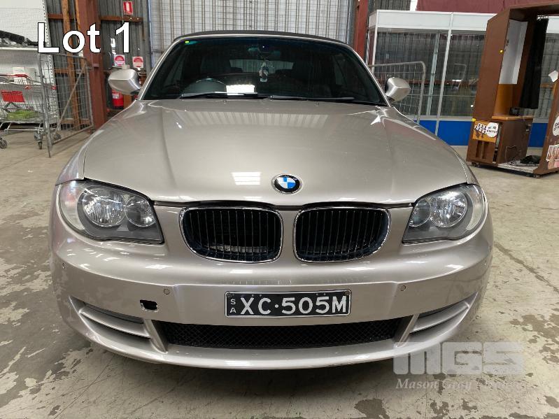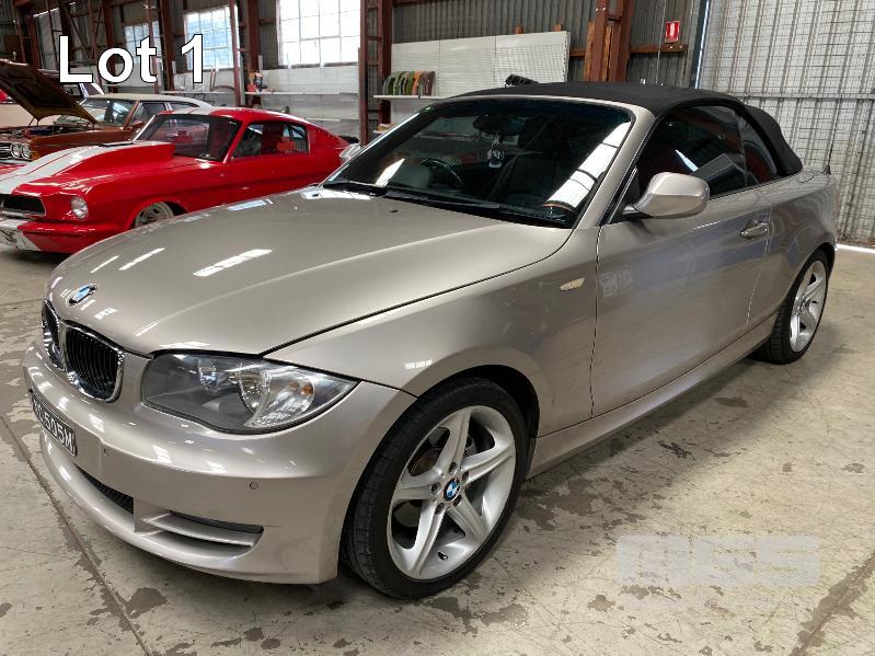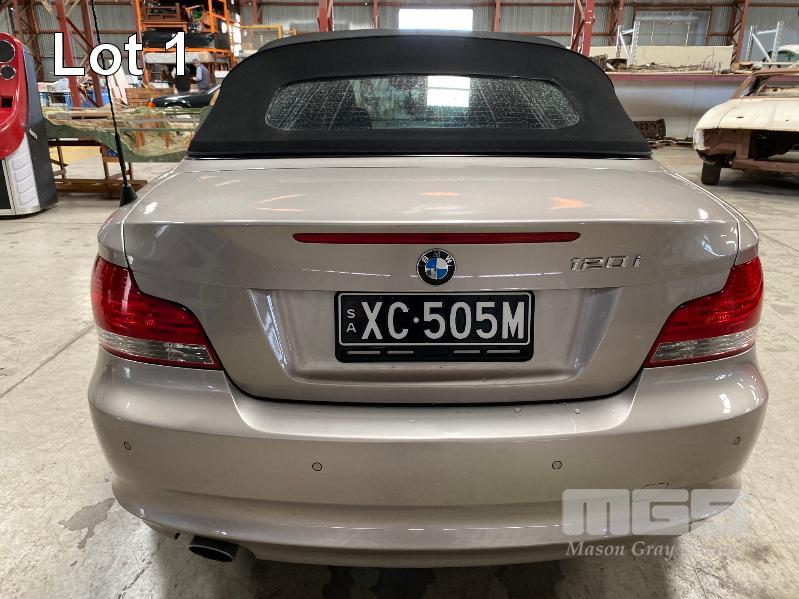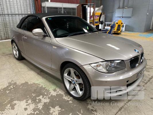 2009 BMW 120I E87 SOFT TOP CONVERTIBLE SEDAN REG: XC 505M (SA) (EXPIRED) VIN: WBAUL52030VE85613 ENG: N46B20BDA2611399 ODO: 153,689 kms INDICATED 4 CYLINDER TURBO, 4 SPEED AUTO, PETROL, SILVER DUCO, 2 DOORS, 4 SEAT, ABS, AIR BAG, AIR CON, ALLOY WHEELS, BLUETOOTH, CD PLAYER, CENTRAL LOCKING, CRUISE CONTROL, IMMOBILISER, LEATHER TRIM, POWER STEERING, POWER WINDOWS, SPARE WHEEL, KEY #24 (WITH PAPERS, WITH 2 KEY/S, WITH OWNER'S MANUAL, WITH SERVICE BOOKS)