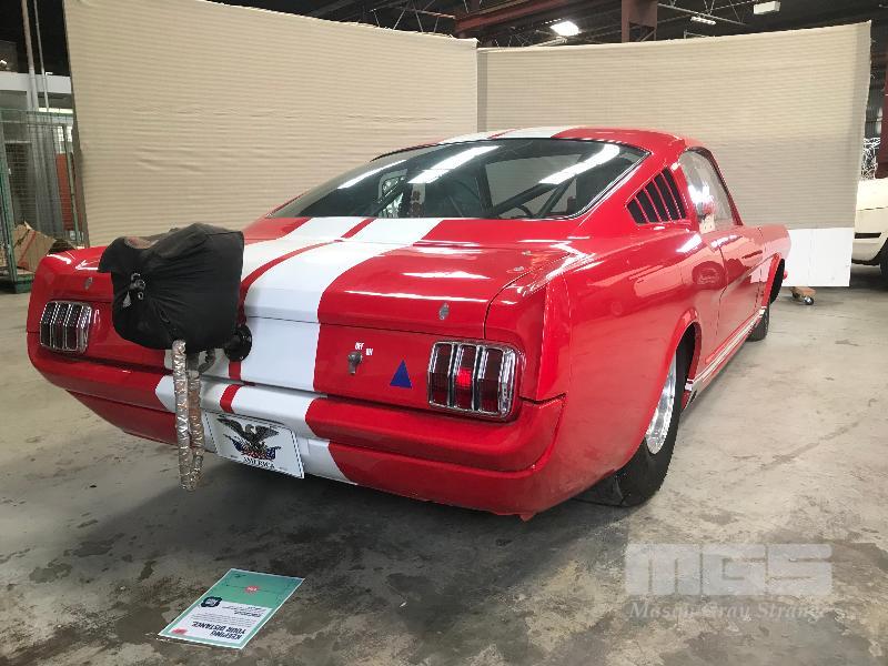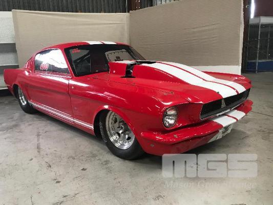 1965 FORD MUSTANG (LHD) FASTBACK COUPE DRAG RACING CAR FORD 355 CUI V8, 2 SPEED POWERGLIDE, PETROL, RED DUCO, 1 DOORS, 2 SEAT, FULL TUBE CHASSIS BUILT BY CHRIS ALSTON CHASSISWORKS USA TIN ROOF & GAURDS, FIBREGLASS PANELS EXTENSIVELY REBUILT SINCE ARRIVAL IN AUSTRALIA DART BLOCK, AFR HEADS, JE PISTONS, EAGLE ROTATING ASSEMBLY, JESSEL ROCKERS FITTED WITH J7 VORTEC SUPER CHARGER PLUS NEW 2000CC INJECTORS UPGRADED FUEL SYSTEM FITTED WITH TRANS BRAKE & 5000 RPM STALL CONVERTER FORD 8.8 MODIFIED DIFF BY MARK WILLIAMS WILLWOOD DISC BRAKES, CONVO PRO ALLOY WHEELS RAN A 8 SECOND QTR MILE BEFORE REBUILD (ALL INFORMATION PROVIDED BY VENDOR) (NO PAPERS, NO OWNER'S MANUAL, NO SERVICE BOOKS)