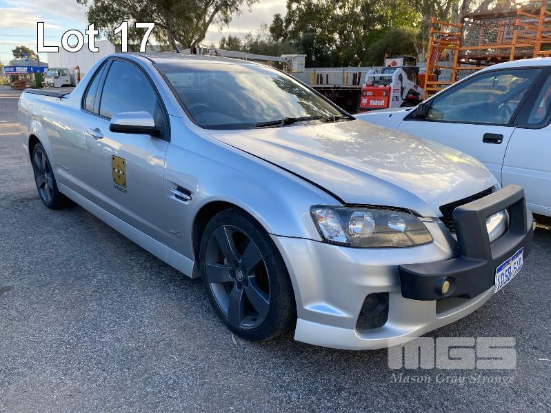 2011 HOLDEN VE COMMODORE THUNDER SERIES II UTILITY REG: 1DSB 510 (WA) VIN: 6G1EK4EV4BL557938 ENG: LLT111600015 ODO: 222,067kms SHOWING 6 CYLINDER, AUTOMATIC TRANSMISSION, PETROL, SILVER DUCO, 2 DOORS, 2 SEAT, ABS, AIR BAG, AIR CON, ALLOY WHEELS, BLUETOOTH, CENTRAL LOCKING, CRUISE CONTROL, NUDGE BAR, POWER WINDOWS, KEY #2 (WITH 2 KEY/S, WITH OWNER'S MANUAL)