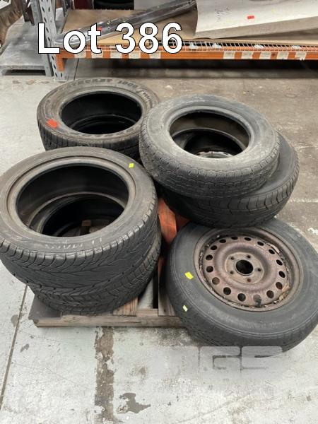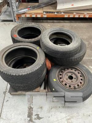 4 x DUNLOP BATHURST TYRES, 225/50R16 AND 3 x ASSORTED TYRES ADN RIMS SUIT FORD