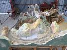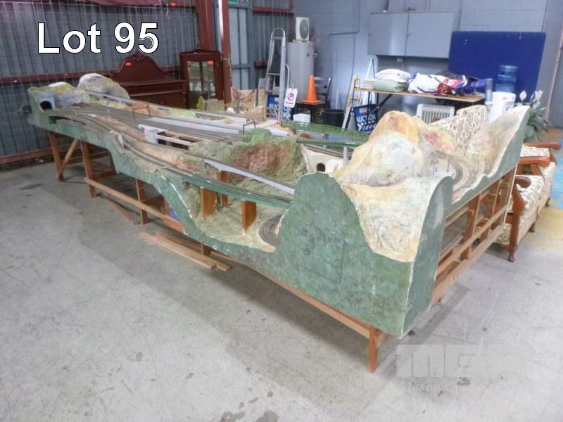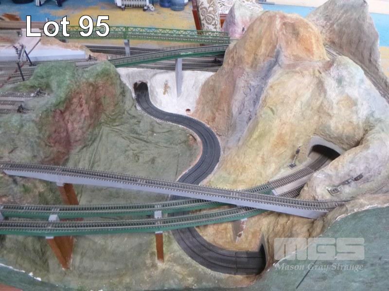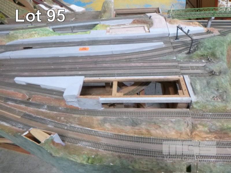 MODEL RAILWAY LAYOUT COMPRISING HO GAUGE, SLIMLINE TEXTURED MULTI LEVEL MOUNTAIN SCENE MULTIPLE TRACK LAYOUT INCORPORATING TUNNELS WITH OVER & UNDERPASSES, SIGNAL DIORAMA SWITCHGEAR & WIRING. TO SUIT ADDITIONS TO EXISTING LAYOUT OR STAND ALONE SYSTEM 3 SECTION FOR TRANSPORT
