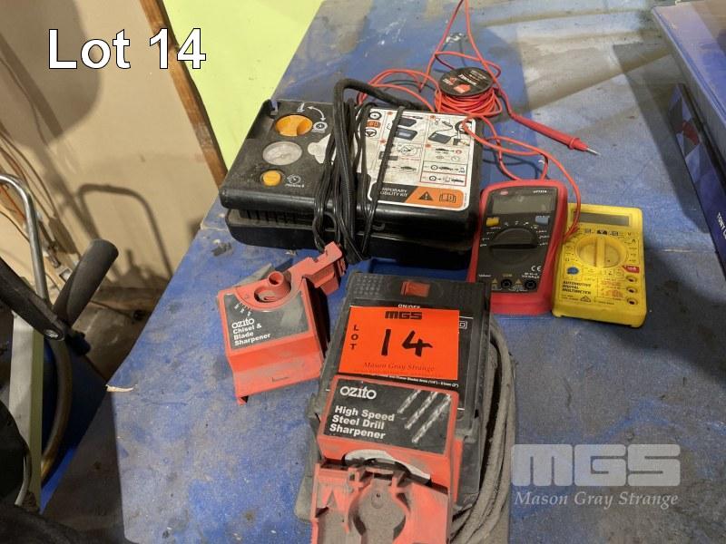 OZITO DRILL SHARPENER, 12v COMPRESSOR & MULTI METERS