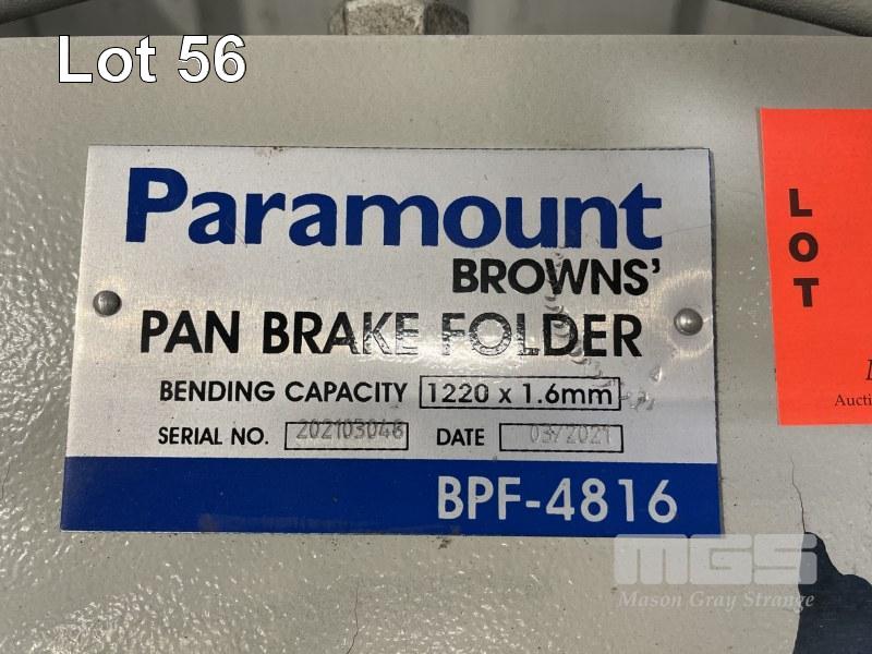 PARMOUNT BENCH TOP FOLDER/PAN BRAKE, MODEL: BPF- 4811, CAP: 1220 x1600mm, DOM: 2021, 14 FINGER
