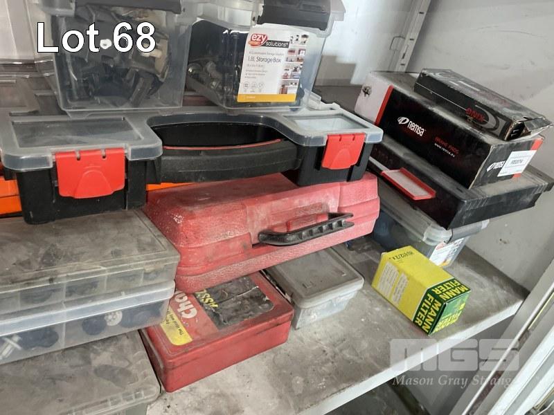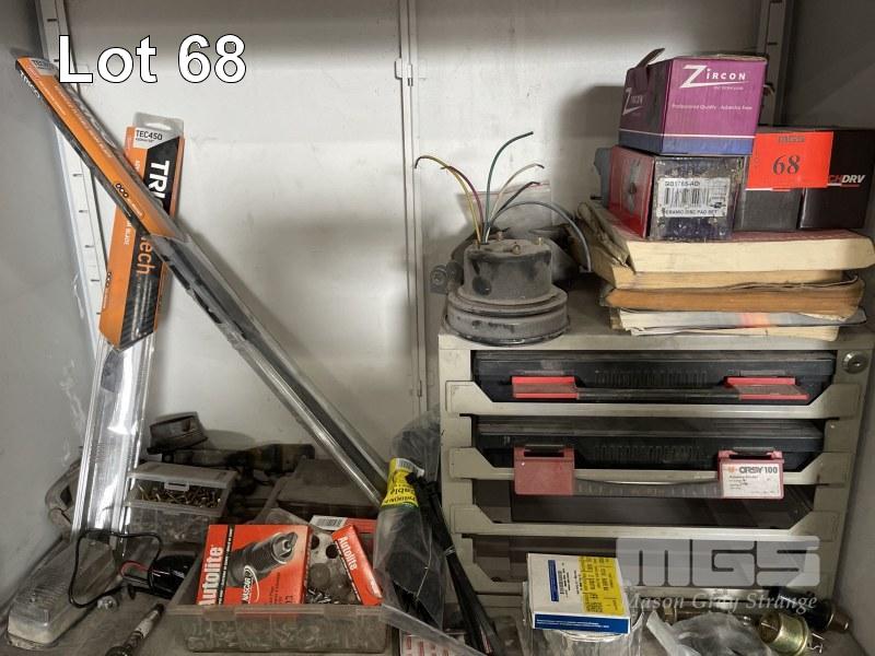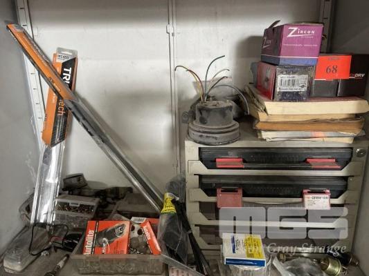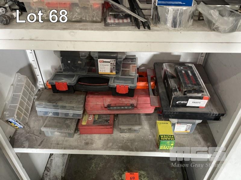 ASSORTED NUTS, BOLTS, GRAB KITS, PARTS IN CABINET