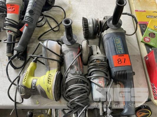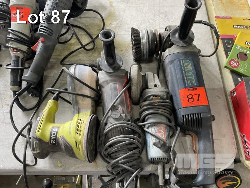 3 x ASSORTED ANGLE GRINDERS, WITH RYOBI SANDER