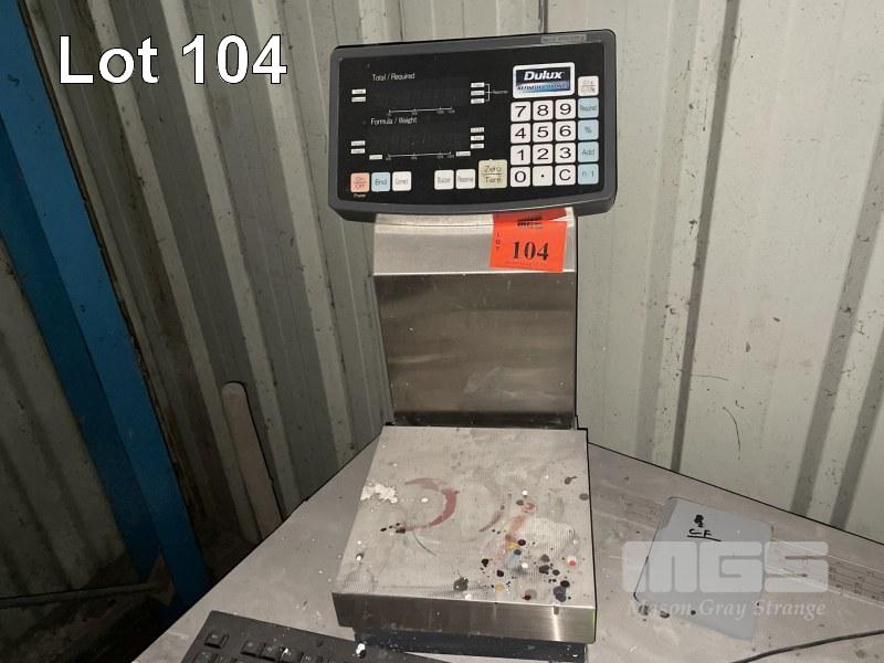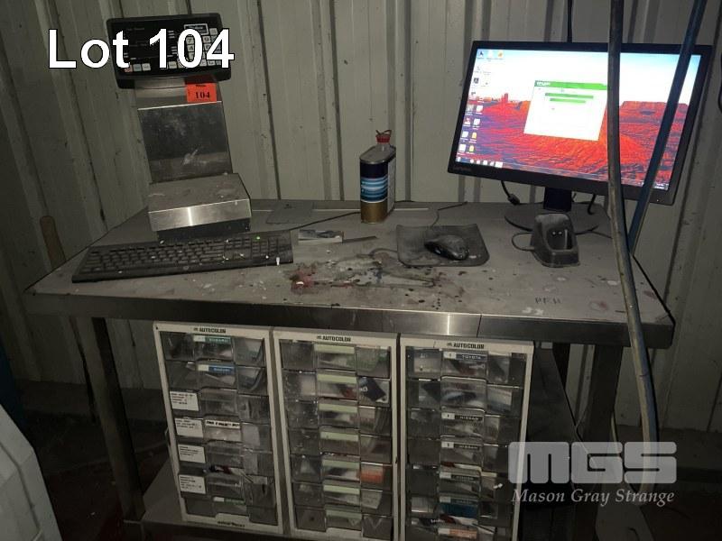 PAINT MIX STATION, COMPUTER + STAINLESS STEEL BENCH WITH CODED CARDS