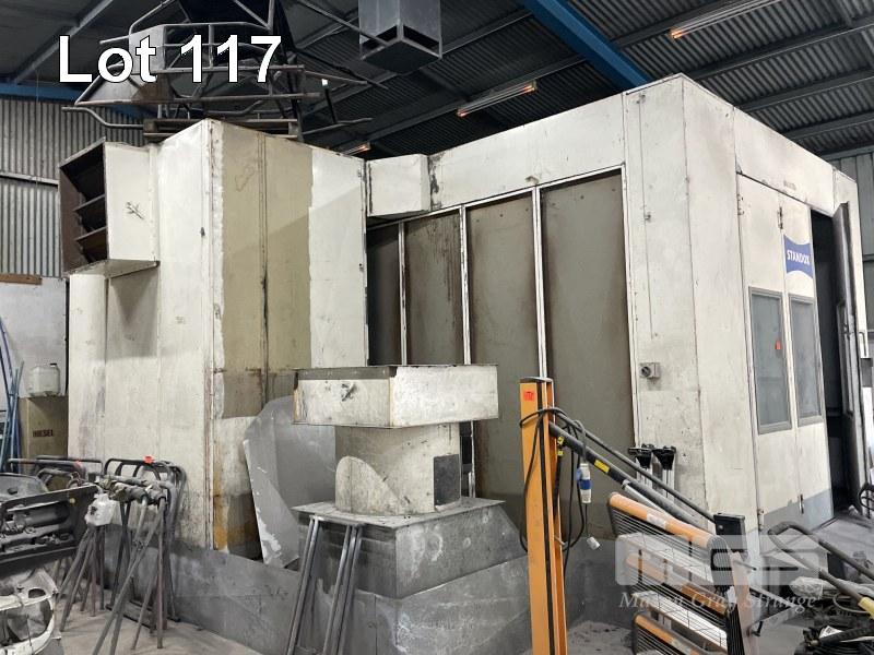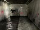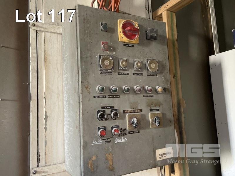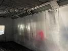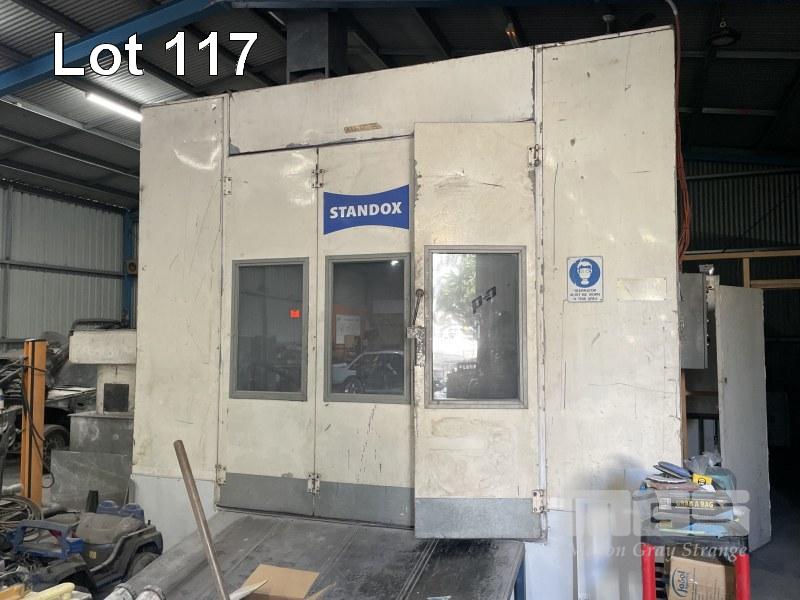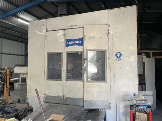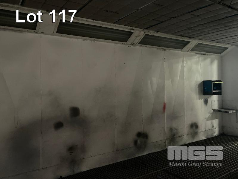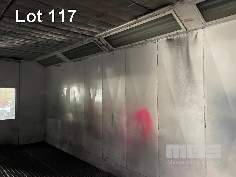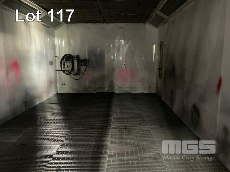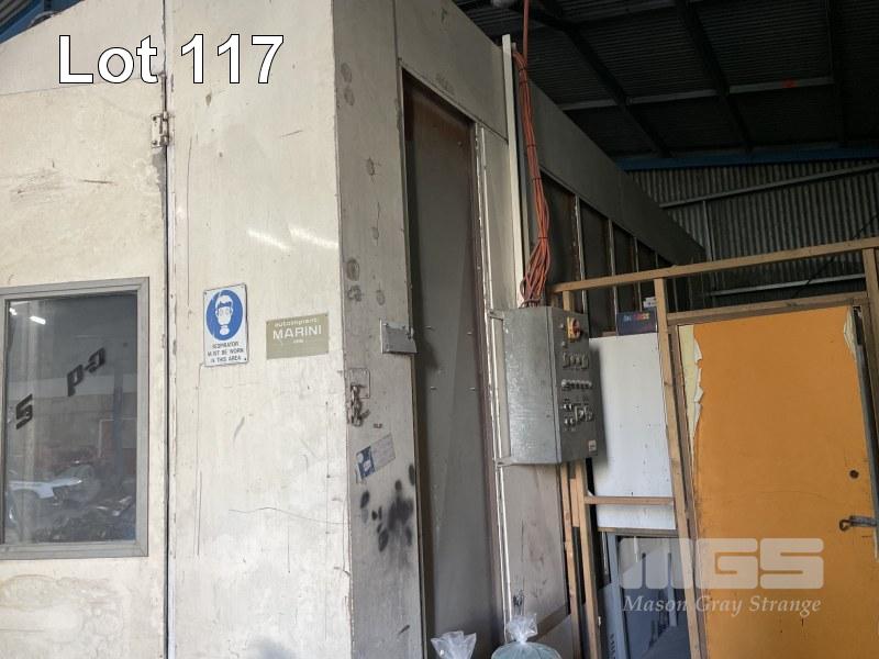 ABOVER GROUND AUTO SPRAY BOOTH, MARINI ITALIA, PRE FAB TIN PANEL CONSTRUCTION, DIMESIONS APPROX 8 x 4 x 4m, DIESEL HEAT - BURNER SIDE MOUNT EXTRACTION WITH UP RAMP (BUYER TO DISMANTLE & REMOVE AT OWN COST)