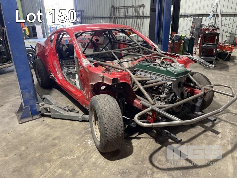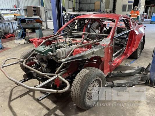 DIRT CIRCUT CAR, MUSTANG BODY, UNDER CONSTRUCTION , BARRA FORD 6 CYLINDER, PART CAGE, ROLLING