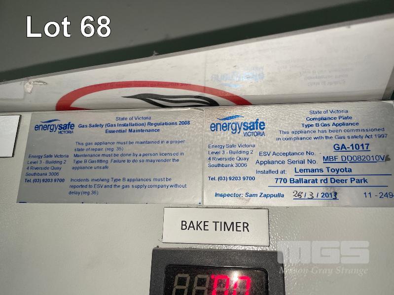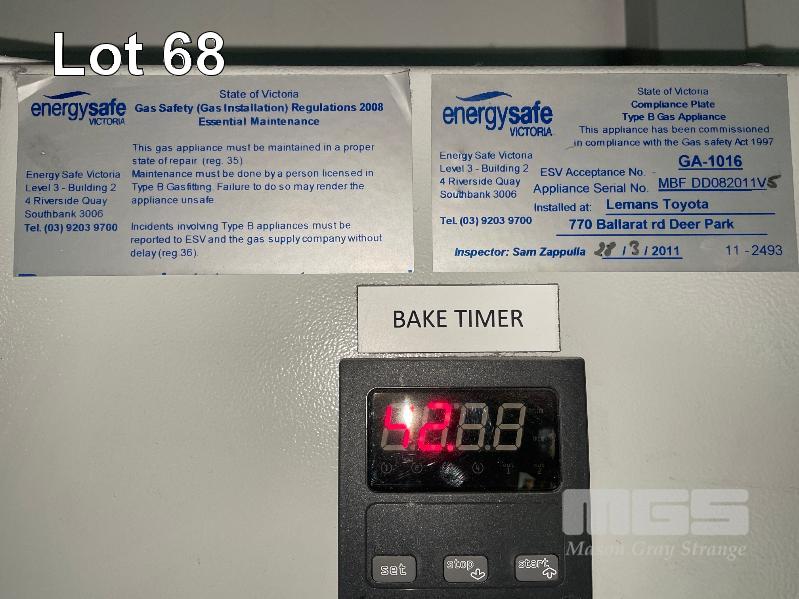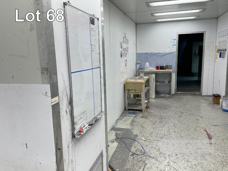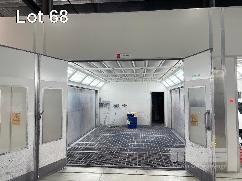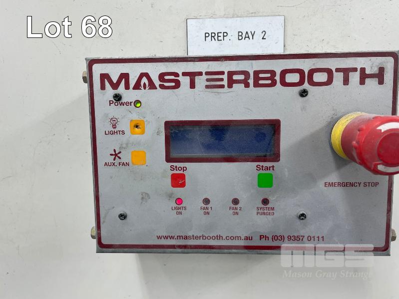 MASTER BOOTH, CRASH COLLISION PAINT/ PRE PAINT SYSTEM 4 x BAY PREPAINT/ SANDING STRUCTURE, 8 x 4m APPROX PER BAY, WITH FLOOR VENT 4 x DUCT EXTRACTION UNITS, 16m DIVIDING CURTIAN, 3m CENTER CURTIAN, TRISK TRACKMASTER DUAL ARM INFARED DRYIN LAMP UNIT (1 ARM ALL FAULTS) MODEL:TRISK-32DT, 4 x MASTER BOOTH CONTROLS, FLOOR TRACKING WHEEL CRADLES, LINKING PREPAINT SPRAY BOOTH & BAKE BOOTH AREAS SPRAY BOOTH 8 x 4m PREFAB PANEL DOWN DRAFT SYSTEM BAKE BOOTH, 8 x 4m PREFAB PANEL DOWN DRAFT SYSTEM WITH DIVIDING CURTIANS/ SIDE ACCESS, FOLDING DOOR FRONT, BOTH GAS FIRED BAKE SERIAL: MBFD0111016V, HOURS: 10,501 SPRAY SERIAL: MBFD0111015V, HOURS: 4,963 COMPLETE WITH PREFAB PAINT ROOM WITH MIXING BENCH & VENTILATED EXTRACTION TO CEILING (BUYER TO REMOVE) (PROFESSIONAL SERVICES REQUIRED)