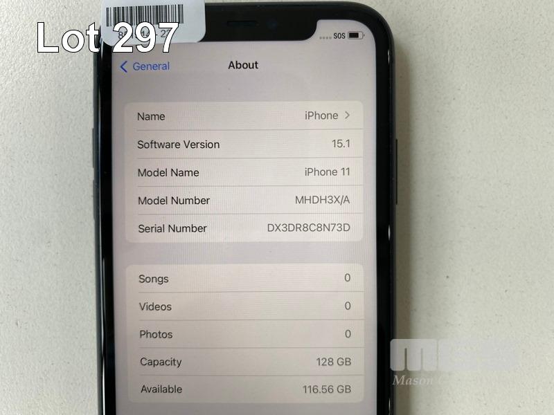 APPLE iPHONE 11, 128GB, BLACK, MODEL MHDA3X/A (NO CHARGER, NO CABLE) S/N:DX3DR8C8N73D