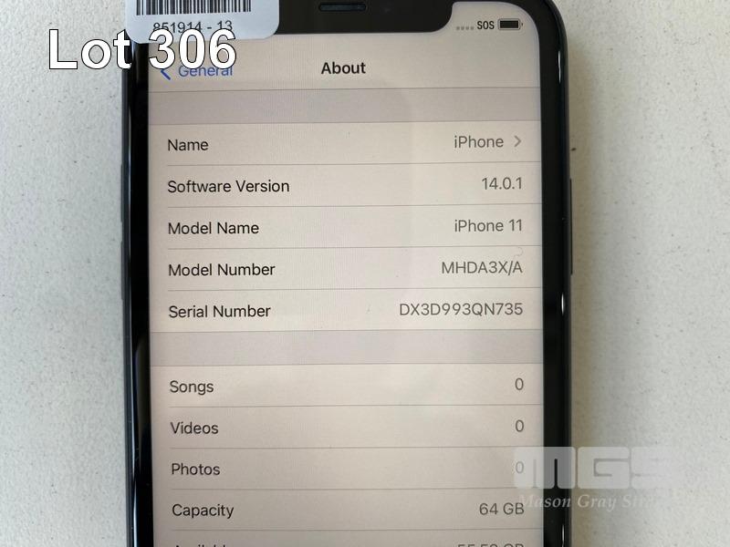 APPLE iPHONE 11, 64GB, BLACK, MODEL MHDA3X/A (NO CHARGER, NO CABLE) S/N:DX3D993QN735