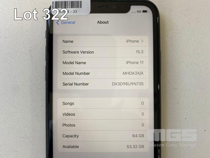 APPLE iPHONE 11, 64GB, BLACK, MODEL MHDA3X/A (NO CHARGER, NO CABLE) S/N:DX3D98U9N735