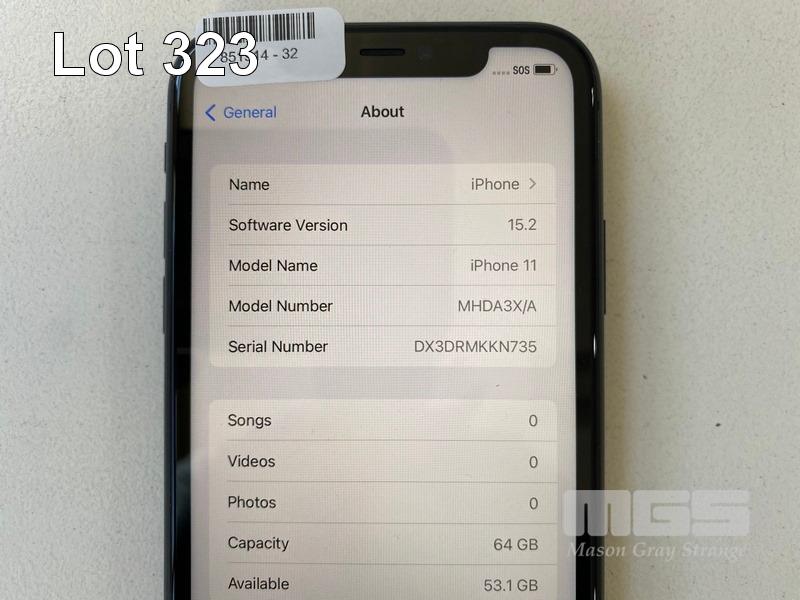 APPLE iPHONE 11, 64GB, BLACK, MODEL MHDA3X/A (NO CHARGER, NO CABLE) S/N:DX3DRMKKN735