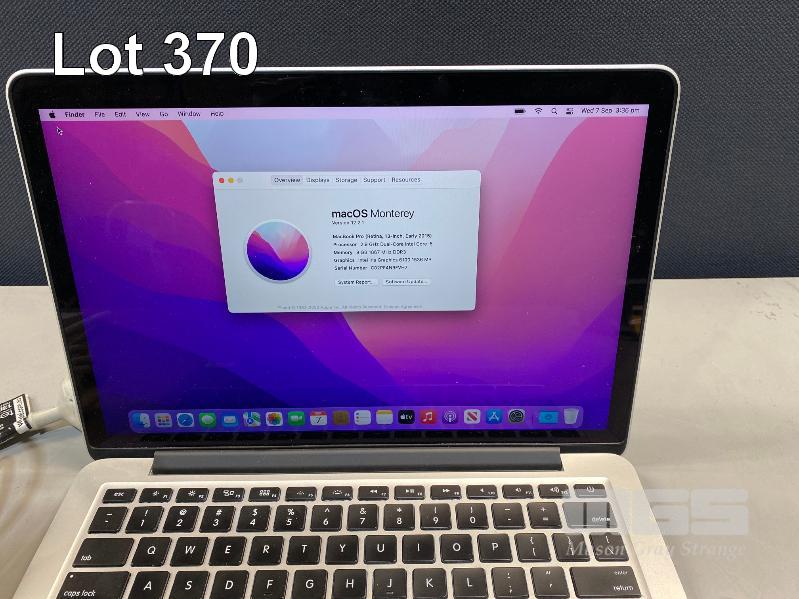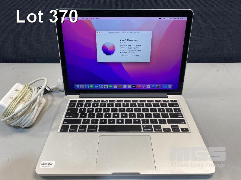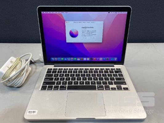 LAPTOP, APPLE MACBOOK PRO (A1502), CORE i5 5287U (5TH GEN) @ 2.9GHz, 8GB DDR3 RAM, 512GB SSD, 13.3" RETINA DISPLAY (2560x1600), INTEL IRIS GRAPHICS 6100, Wi-Fi, MAC OS 12 INSTALLED & POWER SUPPLY S/N:C02PF4N9FVH7