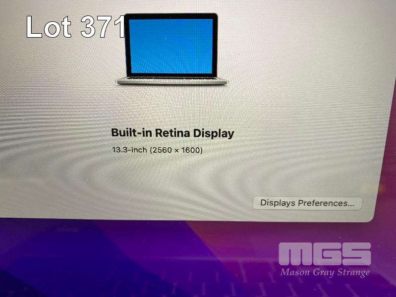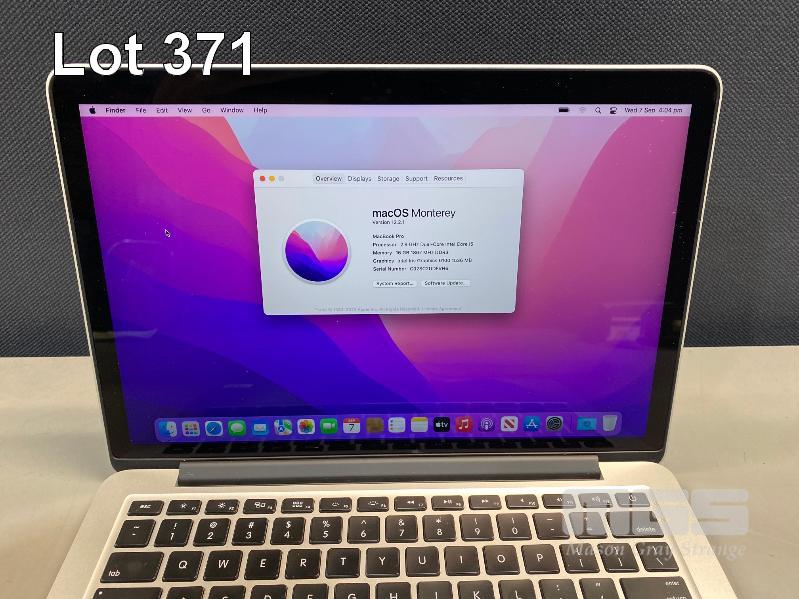 LAPTOP, APPLE MACBOOK PRO (A1502), CORE i5 5287U (5TH GEN) @ 2.9GHz, 16GB DDR3 RAM, 256GB SSD, 13.3" RETINA DISPLAY (2560x1600), INTEL IRIS GRAPHICS 6100, Wi-Fi, MAC OS 12 INSTALLED (NO POWER SUPPLY) S/N:C02SC2UDFVH6