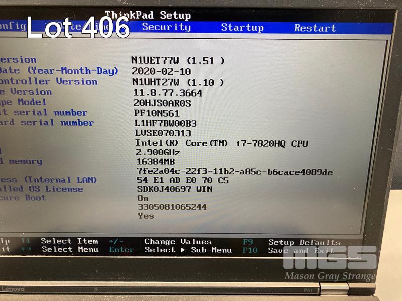 LAPTOP, LENOVO THINKPAD P51 MOBILE WORKSTATION, TYPE 20HJ, CORE i7 7820HQ (7TH GEN) @ 2.9GHz, 16GB DDR4 RAM, 256GB NVMe M.2 SSD, 15.6" WIDESCREEN (1920x1080), 4GB NVIDIA QUADRO M2200 VIDEO, Wi-Fi, BLUETOOTH, WINDOWS 10 PRO INSTALLED & POWER SUPPLY (NOTE: MINOR MARKS ON SCREEN) S/N:PF10N561
