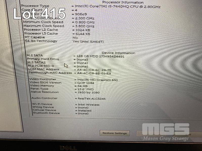 LAPTOP, DELL PRECISION 3520 WORKSTATION, CORE i5 7440HQ (7TH GEN) @ 2.8GHz, 8GB DDR4 RAM, 128GB M.2 SSD, 15.6" TOUCHSCREEN (1920x1080), INTEL HD GRAPHICS 630, 2GB NVIDIA QUADRO M620 VIDEO, Wi-Fi, CELLULAR, WINDOWS 10 PRO INSTALLED & POWER SUPPLY S/N:4MVN3M2