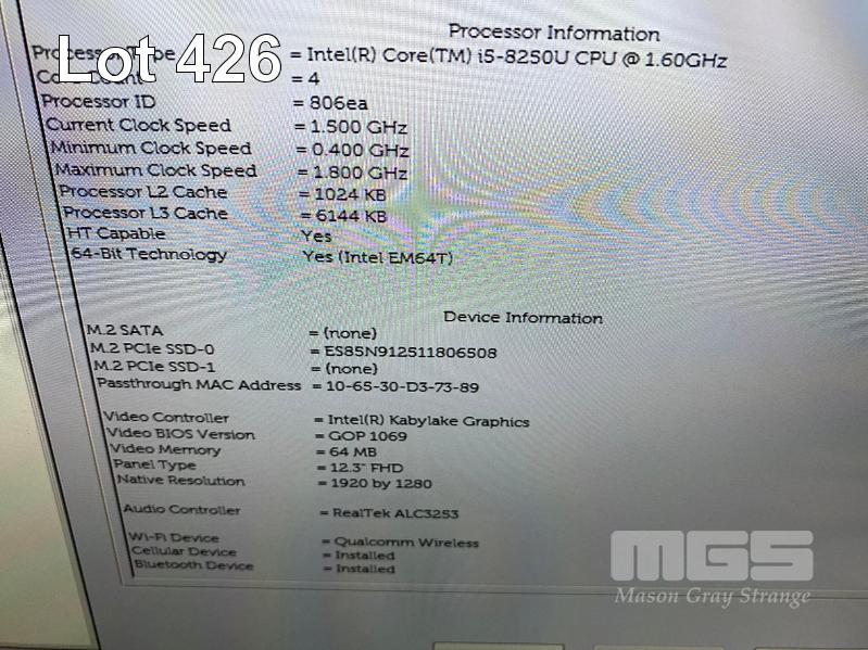 TABLET PC, DELL LATITUDE 5290, CORE i5 8250U (8TH GEN) @ 1.6GHz, 8GB DDR3 RAM, 256GB NVMe M.2 SSD, 12.3" TOUCHSCREEN (1920x1080), INTEL KABYLAKE GRAPHICS, Wi-Fi, BLUETOOTH, CELLULAR, WINDOWS 10 PRO INSTALLED, KEYBOARD & (GENERIC) USB-C POWER SUPPLY S/N:7KS1PQ2