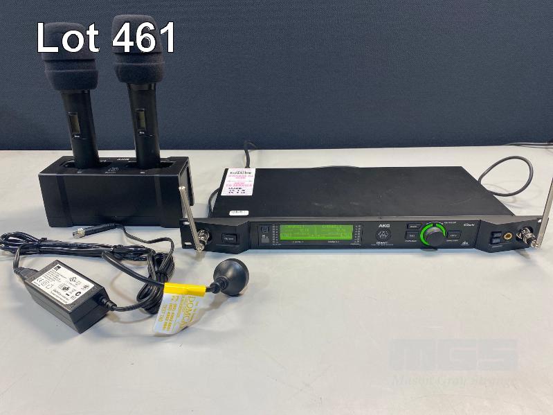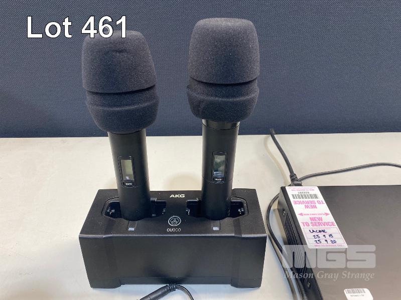AKG DSR800 DIGITAL WIRELESS STATIONARY RECEIVER WITH 2 x DHT800 HANDHELD MICROPHONES & CU800 CHARGING UNIT WITH POWER SUPPLY S/N:76293721