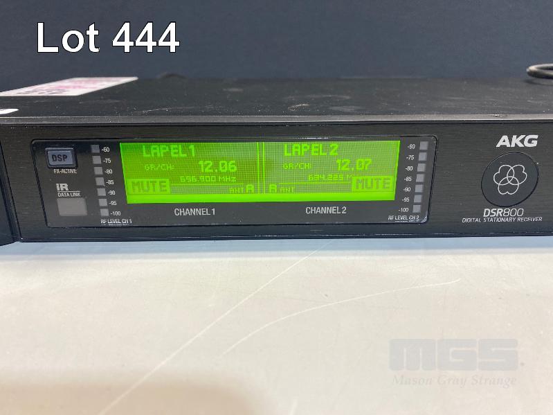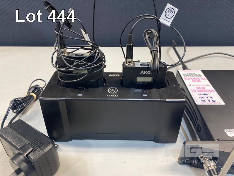 AKG DSR800 DIGITAL WIRELESS STATIONARY RECEIVER WITH 2 x C417L LAVALIER MICROPHONES, 2 x DPT800 BODYPACK TRANSMITTERS & CU800 CHARGING UNIT WITH POWER SUPPLY S/N:76291093