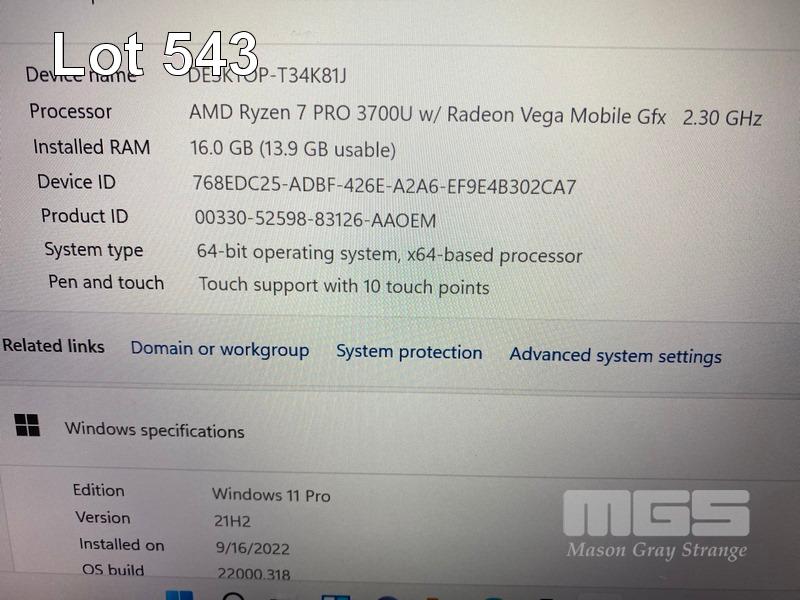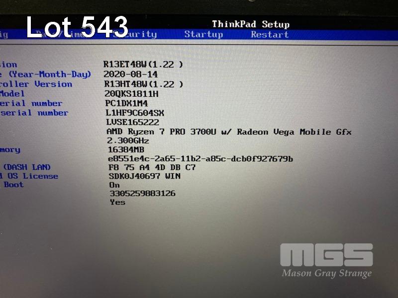 LAPTOP, LENOVO THINKPAD T495s, TYPE 20QK, AMD RYZEN 7 PRO 3700U WITH RADEON VEGA MOBILE GFX @ 2.3GHz, 16GB DDR RAM, 512GB NVMe M.2 SSD, 14" TOUCHSCREEN (1920x1080), Wi-Fi, BLUETOOTH, WINDOWS 11 PRO INSTALLED (NO USB-C POWER SUPPLY) (NOTE: DAMAGED SCREEN HINGE) S/N:PC1DX1M4