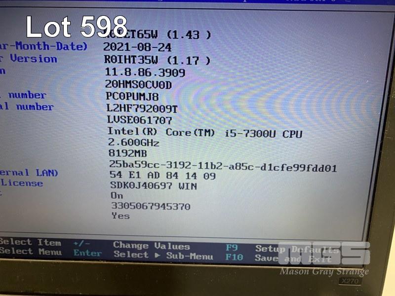 LAPTOP, LENOVO THINKPAD X270, TYPE 20HM, CORE i5 7300U (7TH GEN) @ 2.6GHz, 8GB DDR4 RAM, 256GB NVMe SSD, 12.5" WIDESCREEN (1366x768), INTEL HD VIDEO, Wi-Fi, BLUETOOTH, WINDOWS 10 PRO INSTALLED & POWER SUPPLY (NOTE: MARKS ON SCREEN) S/N:PC0PUMJ8