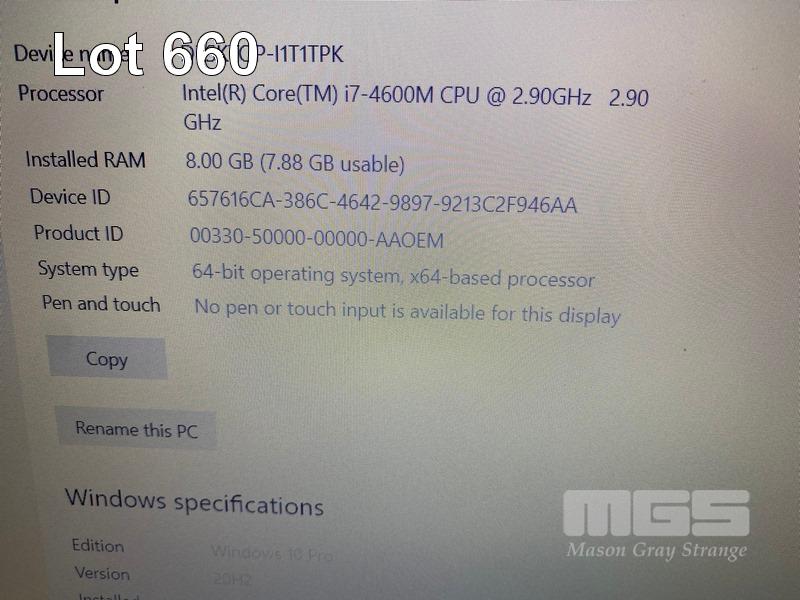 LAPTOP, LENOVO THINKPAD W541, TYPE 20EG, CORE i7 4600M (4TH GEN) @ 2.9GHz, 8GB DDR3 RAM, 256GB SSD, DVD-RW, 15.6" WIDESCREEN (1920x1080), INTEL HD VIDEO, 2GB NVIDIA QUADRO K1100M VIDEO, Wi-Fi, BLUETOOTH, WINDOWS 10 PRO INSTALLED & POWER SUPPLY (NOTE: MARKS ON SCREEN) S/N:R90JX3Q0