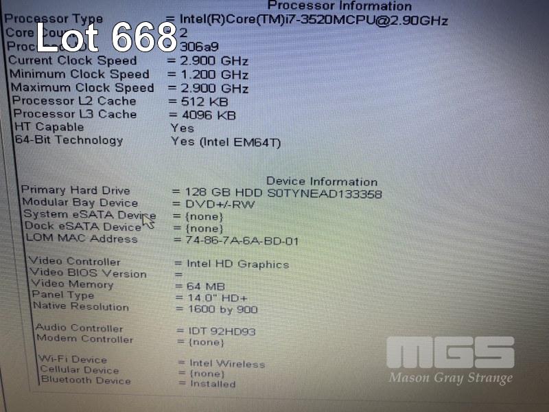 LAPTOP, DELL LATITUDE E6430, CORE i7 3520M (3RD GEN) @ 2.9GHz, 8GB DDR3 RAM, 128GB SSD, DVD-RW, 14" WIDESCREEN (1600x900), INTEL HD VIDEO, Wi-Fi, BLUETOOTH, WINDOWS 10 HOME INSTALLED & POWER SUPPLY S/N:DM6GYW1