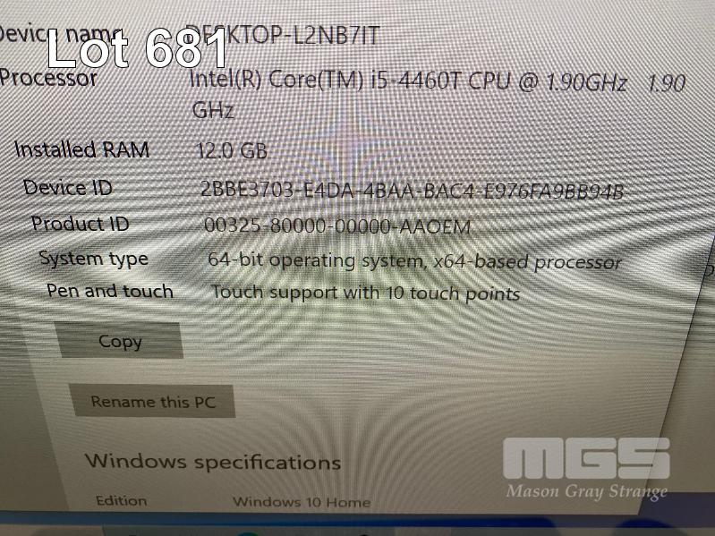 ALL-IN-ONE PC, LENOVO B50-30, CORE i5 4460T (4TH GEN) @ 1.9GHz, 12GB DDR3 RAM, 1TB SATA HDD, DVD-RW, INBUILT 23.8" LCD TOUCHSCREEN (1920x1080), Wi-Fi, WINDOWS 10 HOME INSTALLED, CORDLESS KEYBOARD & MOUSE (NOTE: SCRATCHES ON SCREEN) S/N:S100991P