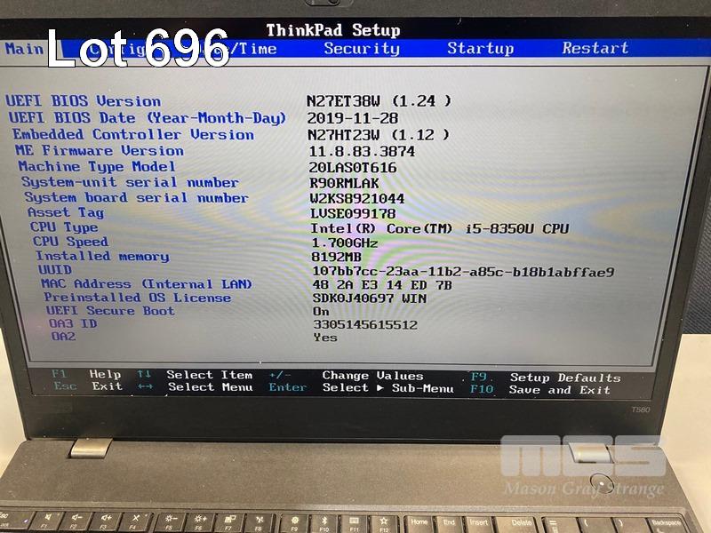 3 x LAPTOPS, LENOVO THINKPAD T580, CORE i7 8350U @ 1.7GHz, 8GB RAM, NO HDD (FAULTY - WON'T DETECT HARD DRIVE) LENOVO THINKPAD T580, CORE i7 8350U @ 1.7GHz, NO RAM, NO HDD (KEYBOARD FAULT) LENOVO THINKPAD T580, NO RAM, NO HDD (FAULTY, MISSING PARTS) (ALL VARIOUS MARKS ON SCREENS) (NO POWER SUPPLIES) S/N:R90RMLAK, R90SGMKV, R90SGMKX